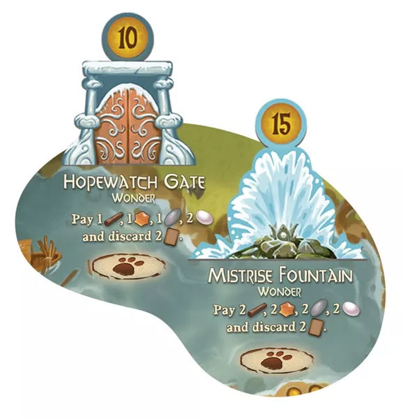 Dive into the enchanting underwater world of Pearlbrook, the first expansion for Everdell! Pearlbrook adds a new dimension to your gameplay with the introduction of a side board, the river board, where you'll send your frog ambassador to gather the precious new resource: pearls. Along the way, you'll encounter a host of new aquatic critters and constructions. Collect enough pearls to construct magnificent wonders and adornments, elevating your city to become the pride of Everdell!