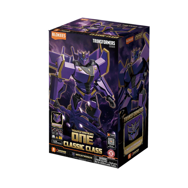 Experience the legendary Megatronus as seen in the renowned animated feature film, Transformers One, with this officially licensed, 12.5 cm tall, collectible model kit. It features dual LED lighting in the eyes and chest, 20-point articulation for dynamic poses, and includes exclusive weapons and accessories. The 107-piece tool-free assembly requires no glue or cutting -- simply snap it together for professional results. This movie-accurate model kit captures the iconic miner-turned-warrior with premium detailing.