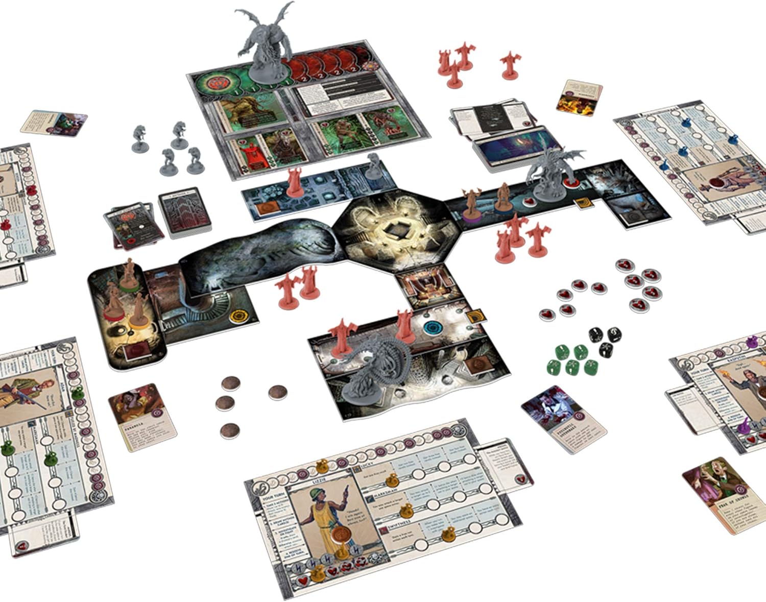 The cultists have been painstakingly preparing for this moment for quite some time. An Elder God, a being adrift in a different dimension, has reached out into their minds, giving them the knowledge necessary to awaken it, and bring it into our own world, unleashing its hellish powers on the unsuspecting populace. The Investigators found out about it too late. The final ritual has begun. But with a little luck, the god might just be vulnerable for a moment after being summoned. That’s when they can shoot it in the face.