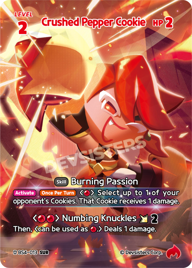 【Activate】 【Once Per Turn】 <{R}> Select up to 1 of your opponent's Cookies. That Cookie receives 1 damage.