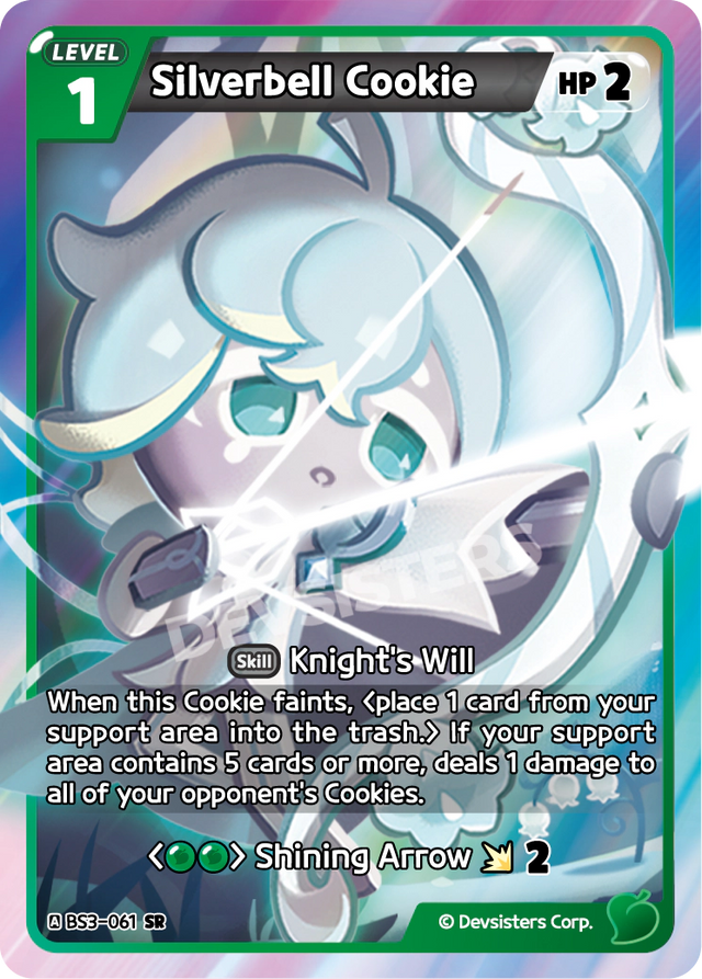 When this Cookie faints, If your support area contains 5 cards or more, deals 1 damage to all of your opponent's Cookies.