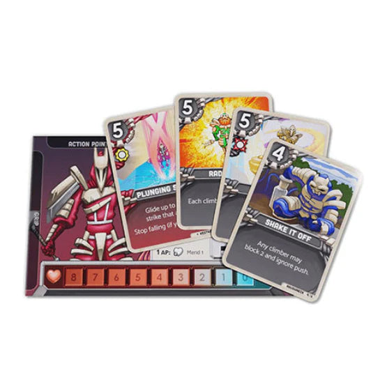 Leviathan Wilds is a 1-4 player boss-battling board game about climbing and saving massive creatures. Using a spiral-bound scenario book, players climb, jump, and glide throughout 17 vibrant leviathans, each with its own map and special rules. Each scenario lasts around 45 minutes, with tougher difficulty levels also available for added replayability.