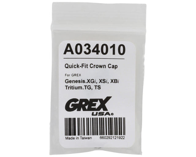Grex Airbrush Quick-Fit Crown Cap. The Grex Airbrush Quick-Fit Crown Cap is intended for use on the Grex Genesis.XGi, XSi, XBi, and the Tritium.TG and TS airbrushes. The Quick-Fit Crown Cap is designed to protect the needle and nozzle of the airbrush while still allowing optimal airflow and paint atomization. The Crown Cap helps control the spray pattern, reducing overspray and allowing for more precise application, which is especially useful for detailed work. The quick-fit design allows for fast and easy attachment and removal of the Crown Cap without the need for tools. This streamlines the workflow and reduces downtime, allowing the artist to focus more on their projects.