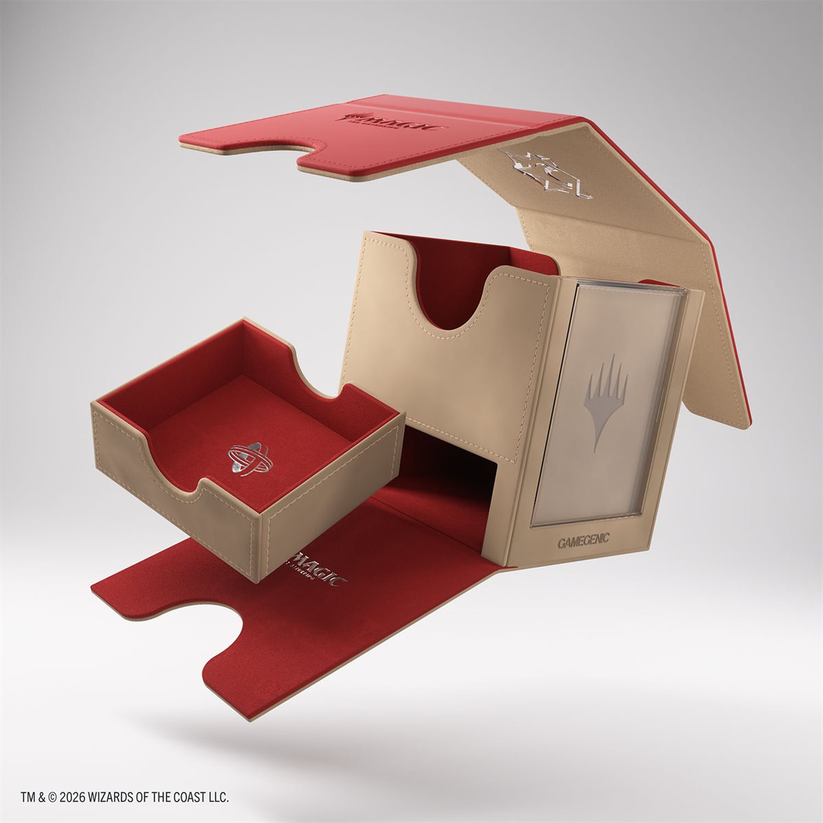 The Squire PLUS holds 100 double-sleeved cards in extra Thick Inner Sleeves. It can also fit 100 regular double-sleeved cards and has extra room for token cards. This premium box is also equipped with our highly rated convertible system: The completely removable cover clips onto the bottom, saving precious space on the gaming table. The Squire PLUS is available in all 5 colors used in Magic: The Gathering™.