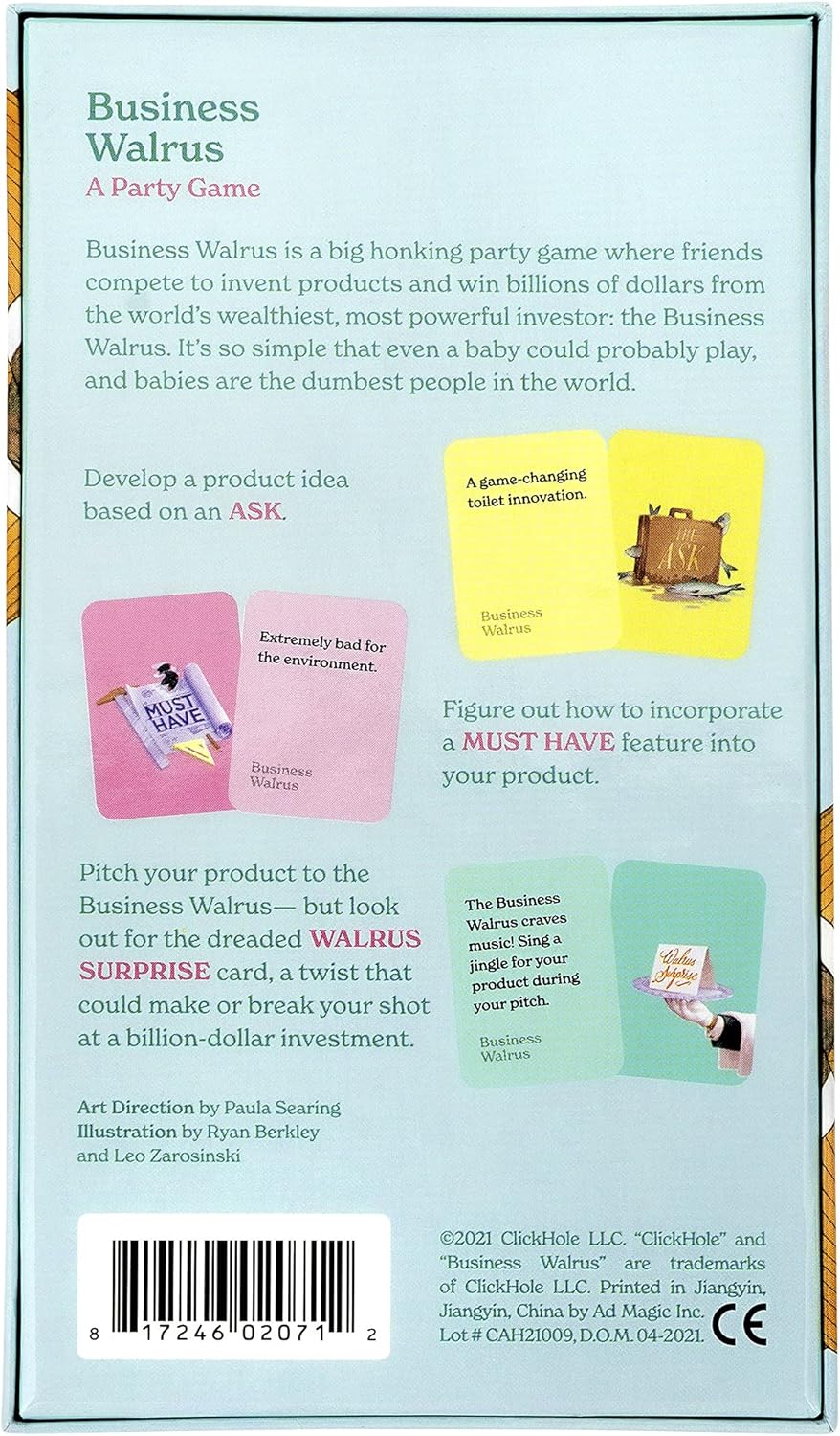 Business Walrus is a zany game from those crazy kids at ClickHole. 37,000 years ago, the Business Walrus crawled out of Lake Michigan and into human society with one goal in mind: to become the wealthiest, most powerful investor the world has ever known. Many centuries later, he has achieved this goal and then some, having established himself as the driving force behind some of the most revolutionary products of all time.