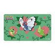 This high-end playmat with stitched edges for the Pokémon trading card game features bright, colorful illustrations of Caterpie, Metapod and Butterfree amid flowers in full bloom. The soft fabric top and non-slip rubber underside provide a secure playing surface that stays put. With dimensions of approx. 61 cm x 34 cm, this playmat also makes an excellent oversized mouse pad for the home or office.