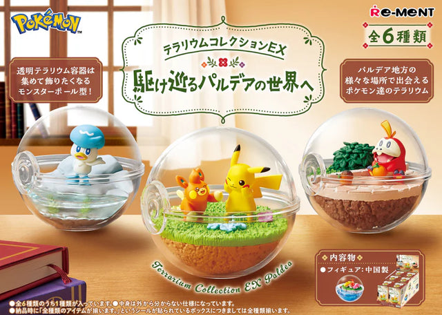 Your favorite "Pokemon" from the world of Paldea are joining the "Terrarium Collection" lineup from Re-Ment! Each lively scene is contained inside a small plastic globe, and they're lots of fun to display together or separately! There are six different designs to collect and trade, and you'll get one of each. Order yours today!