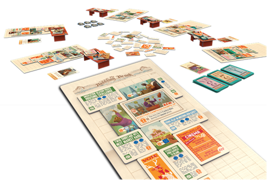 Grab the big stories, and make sure you get the right photos too. A newspaper is a business, so the money has to come from somewhere — don’t forget the ads! After you’ve picked out a combination of stories, photos, and ads, lay out the front page. Did you take enough tiles to fill the paper, but not so many that things have to be cut? Over the course of three hectic days, your skills will be tested as you compete to be the most newsworthy editor!