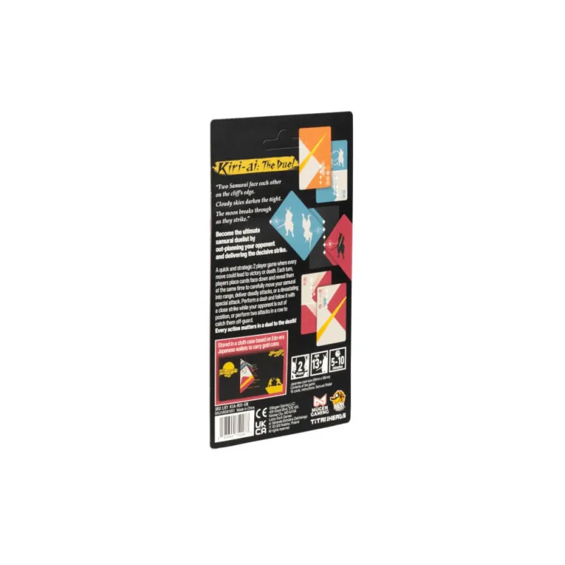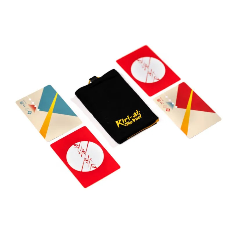 Kiri-ai: The Duel is an enthralling battle between two players, each with a hand of cards that represent their movements and attacks on the battlefield. The fight happens in a narrow lane where combatants edge forward and back in a deadly dance. During each round, opponents will select one movement or attack and then reveal them simultaneously before resolving them.