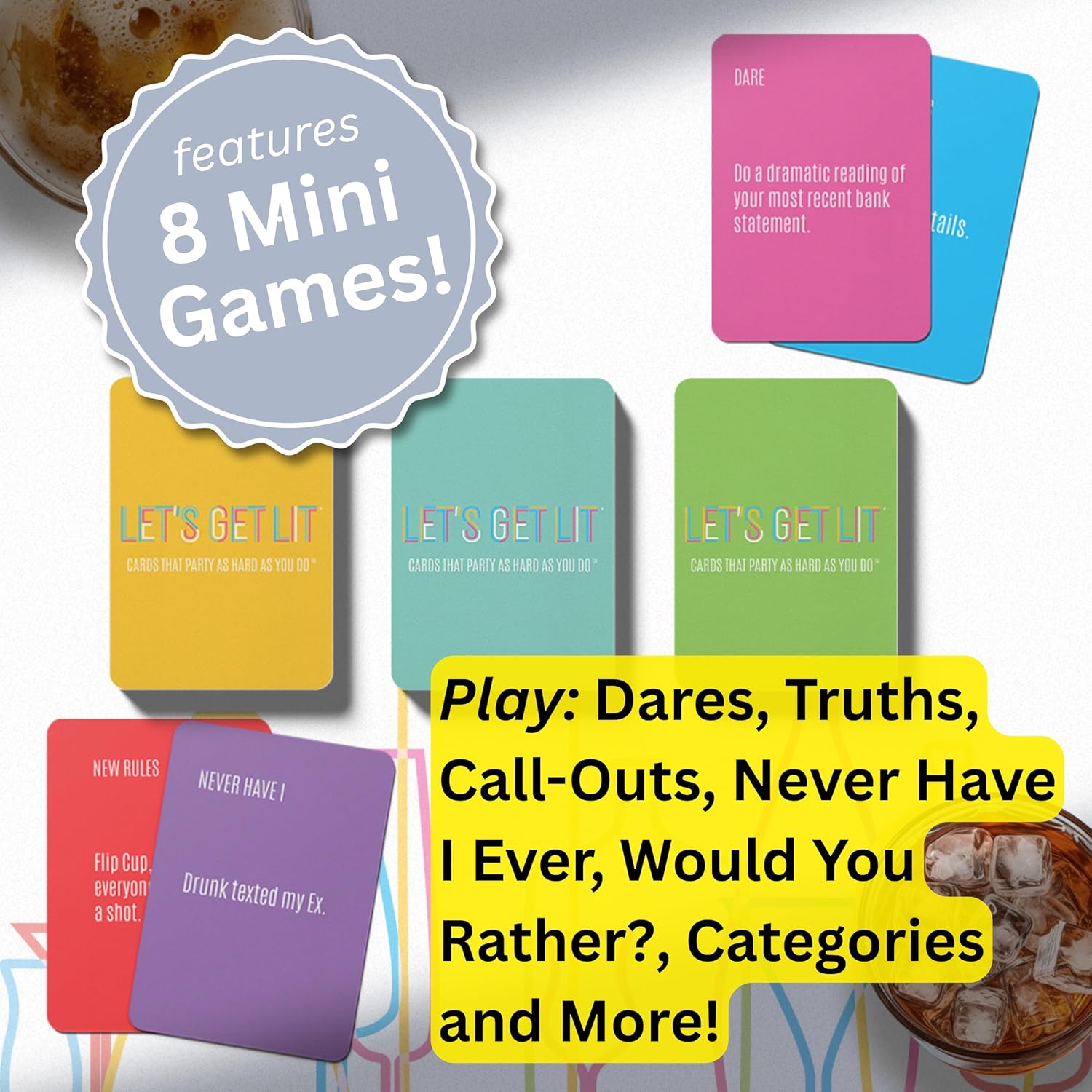 Made for Millennial & Gen Z. Designed for fast paced, turn up nights Effortless fun, drinking nights. Written by top comedians who like to party!-Game built of 7 mini games, including: Dares, Truths, Call Outs, Never Have I Ever, Would You Rather?, Categories