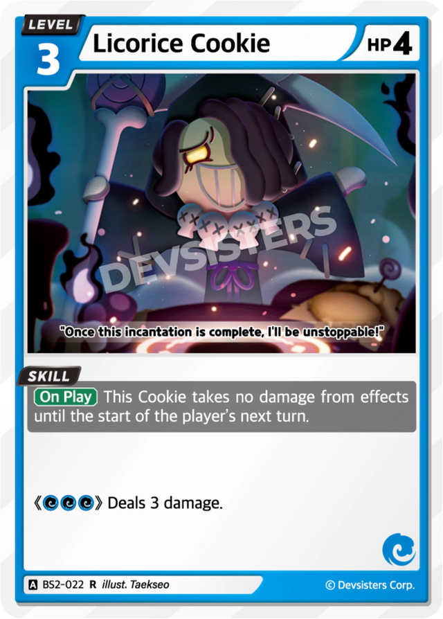 On Play — This Cookie takes no damage from effects until the start of the player’s next turn.