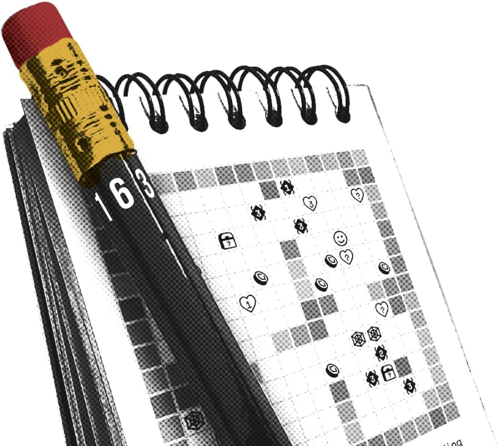 Gameplay is simple but entertaining: you roll a 6-sided die to determine how far you'll move each turn. Then pick a direction, draw a line, and interact with anything on that line, be it a monster (ouch!) some treasure (nice!) or a teleporter (cool!).
