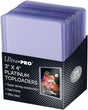 Protect and display your cards with Ultra PRO's Platinum Toploaders. Featuring the highest quality additives that both enhance the protection and clarity of the plastic. Each Toploader is made with a cast frame for a seamless border. Toploaders are made with PVC and sized to fit standard size cards (2-1/2" x 3-1/2") and cards in poly sleeves to protect for any length of storage. Rigid plastic encloses the card and keeps it clean while preventing damage. Each pack includes 25 Toploaders.