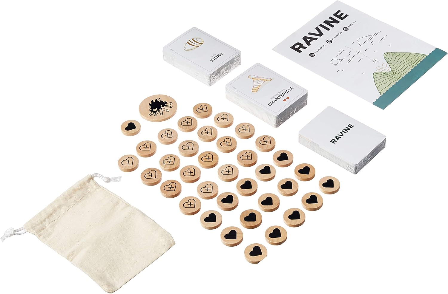 Ravine is a strategic and cooperative survival card game. You and your friends survived the plane crash, but will you survive the night? Work together to forage for food, craft a fire, and build shelters, but be wary: every step you take in the ravine could be one step closer to madness. 3-6 PLAYERS | AGES 10+ | 20 MINUTES
