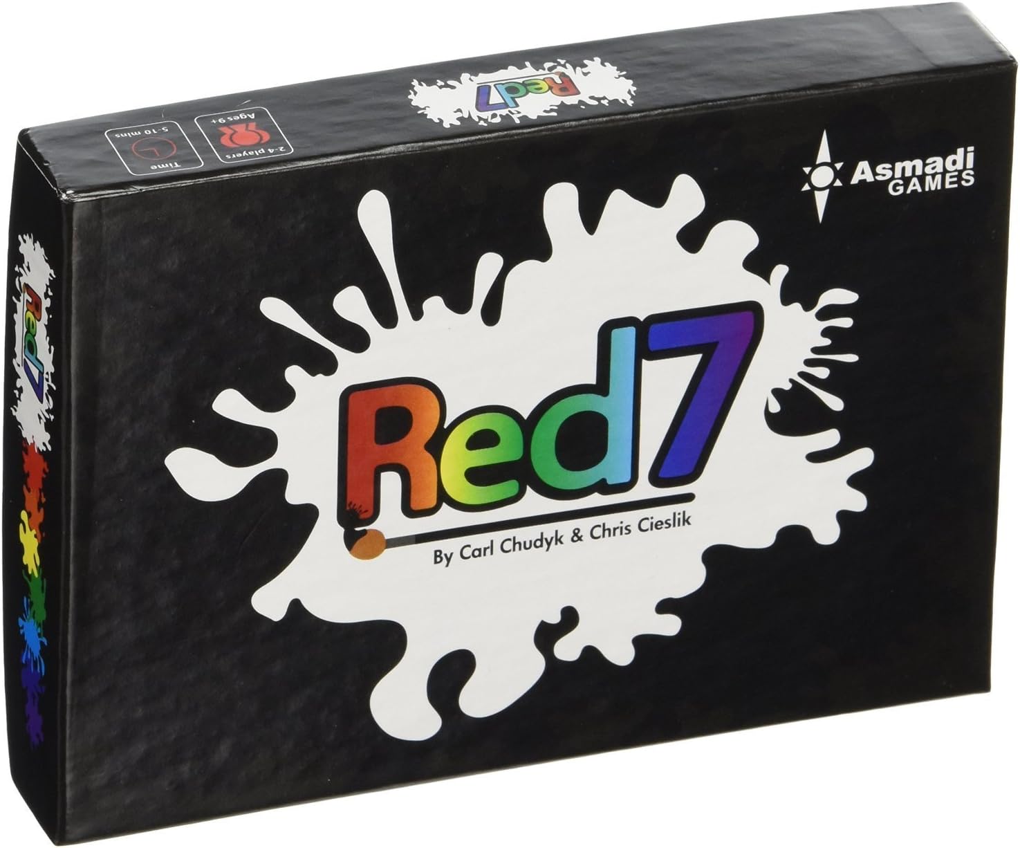 The rules of Red are simple: Highest card wins! But Red is only one of seven games you'll be playing. Red7 is a quick and easy to learn card game that you can teach and play in five minutes. You must be in the lead at the end of your turn, or you're out. Play from your hand to improve your palette, or discard to the rules canvas to change the game! Red7 uses a deck of 49 cards, numbered 1-7 in suits of the seven rainbow colors. To begin a round, each player will receive a seven card hand, and one card face up in front of them. The face up cards begin each player's palette. The top card of the rules canvas (the discard pile) determines what the current rule is. The last player standing wins the round. If you're not winning the current game at the end of your turn, you're out!