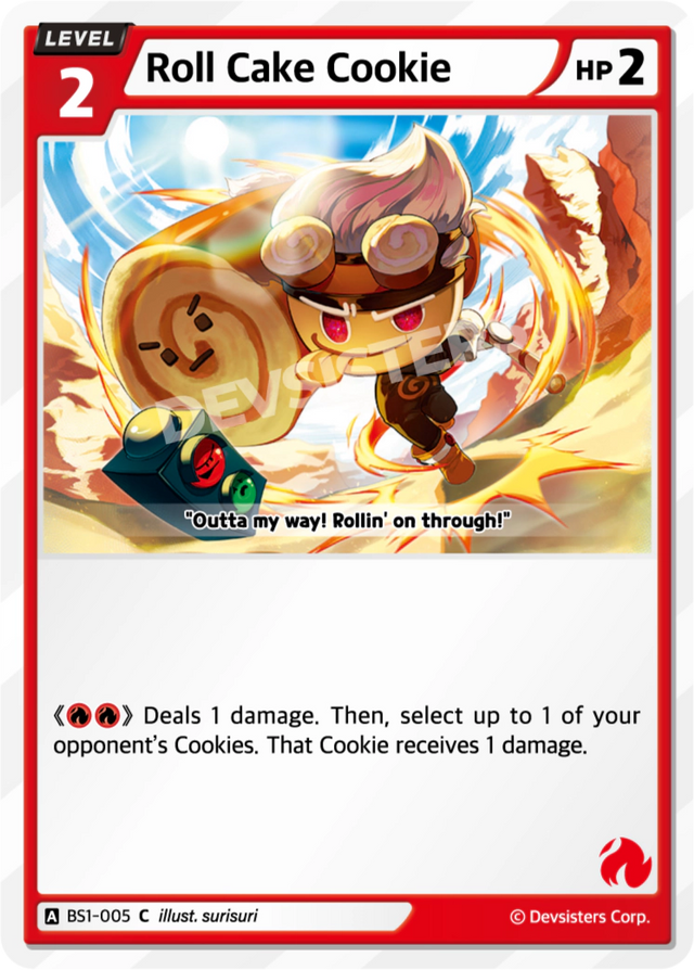 Deals 1 damage. Then, select up to 1 of your opponent's Cookies. That Cookie receives 1 damage. — cost: Red, Red