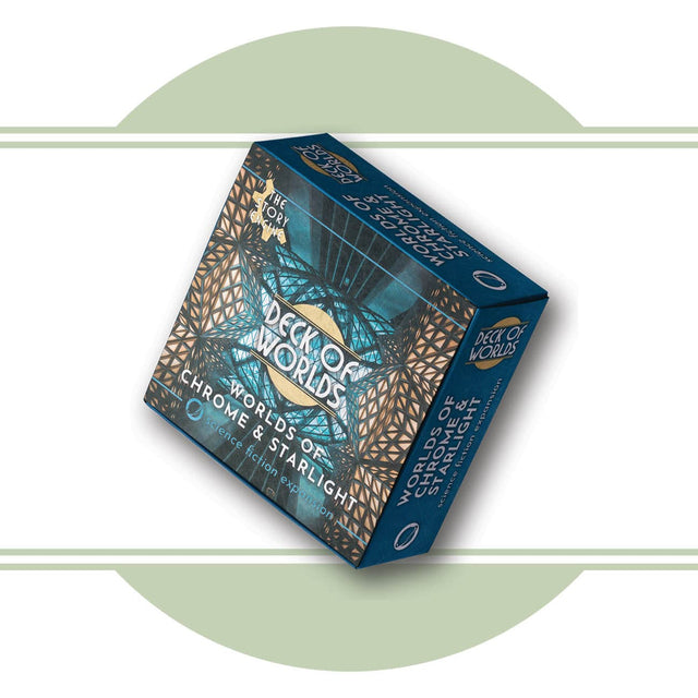 Terraform your planet with this 60-card sci-fi expansion for Deck of Worlds. These futuristic prompts cover your world with seedy spaceports, alien hives, and mysterious space-time anomalies. Explore all the galaxy has to offer with Worlds of Chrome and Starlight.